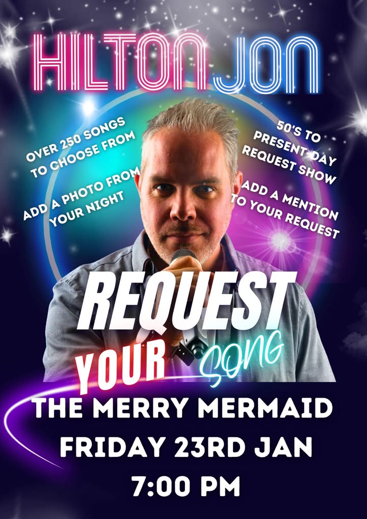 We have the pleasure of Hilton Jon singing all your favourite songs come along and enjoy the night with us at the merry mermaid