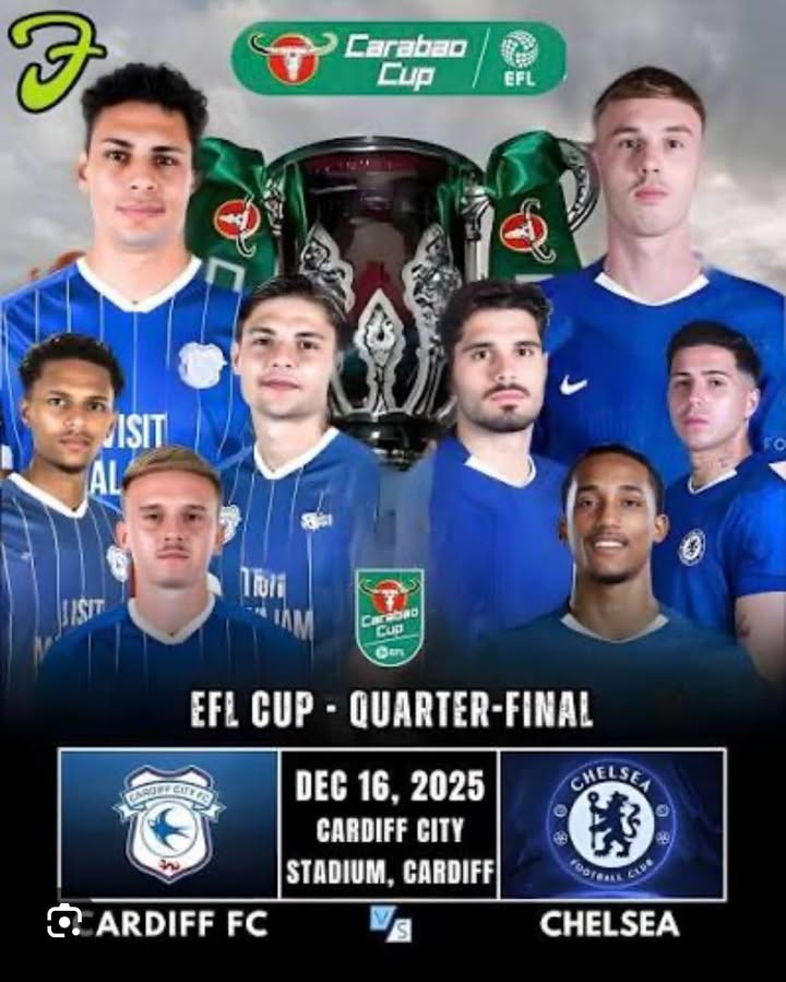 TONIGHT Tuesday 16th Dec Cardiff City vs Chelsea. Carabao Cup Quarter-Final. 8:00pm